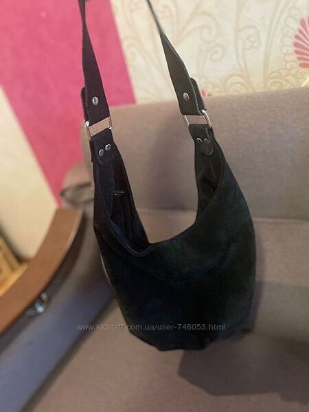 Замшевая черная сумка хобо сумка-мешок