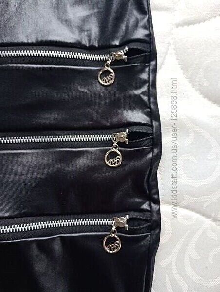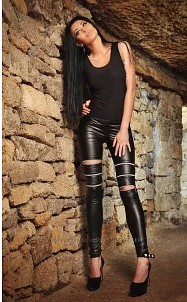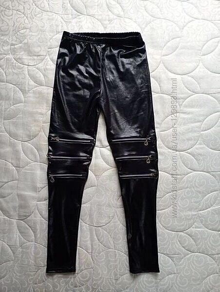 Легінси зі штучної шкіри, з потрійною блискавкою, чорні, готичні, розмір s