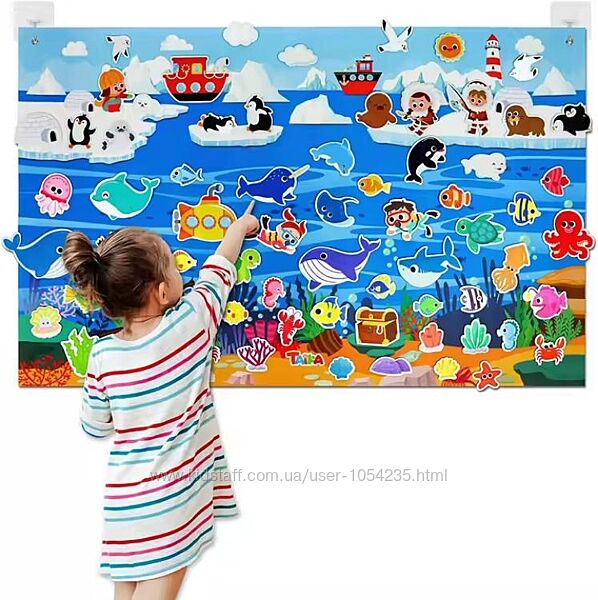 Фетровые плакаты с липучками зоопарк, ферма, море и карта мира.