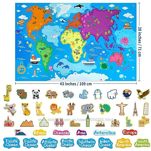 Подробное описание: Фетровые плакаты с липучками зоопарк, ферма, море и карта мира.