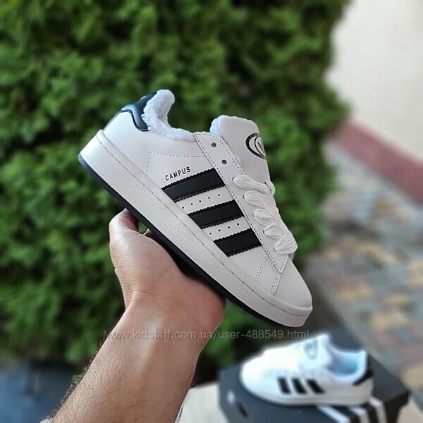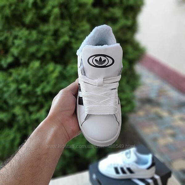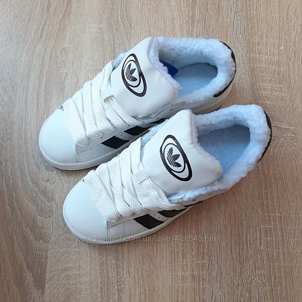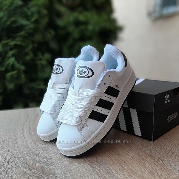 Подробное описание: Зимові жіночі кросівки з хутром Adidas Campus білі з чорним