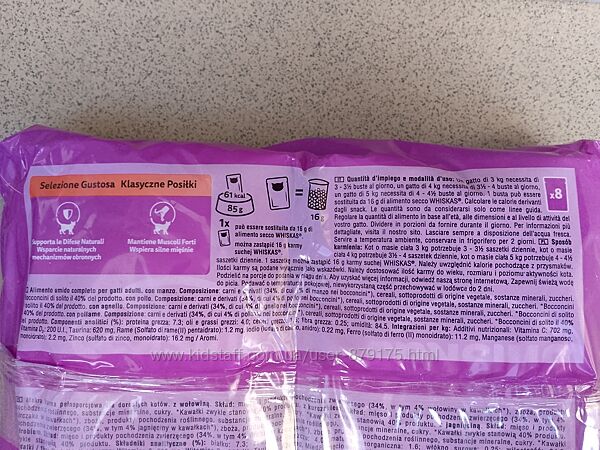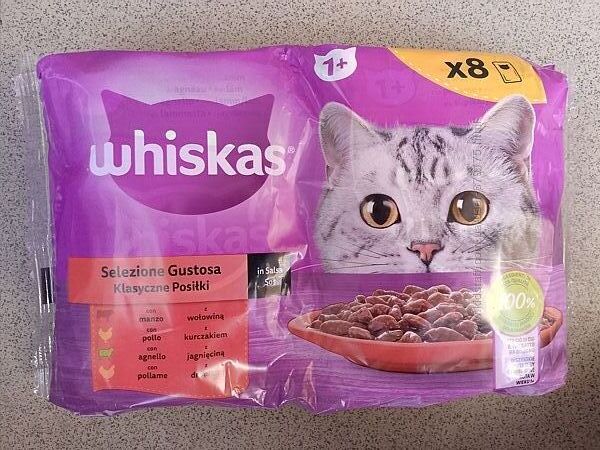 Whiskas Selezione Gustosa- Вологий корм для дорослих котів з класичними смаками. В наборі 8 порційних покетів по 85 грам. Смаки:2шт. з яловичиною,2шт. з куркою,