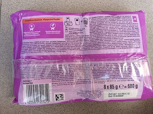 Подробное описание: Whiskas Вологий корм для дорослих котів класичні страви 8шт85 грам 680г