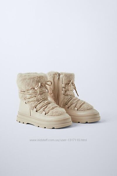 Подробное описание: чоботи Zara з штучним хутром і шнурками чобітки Zara 32,34,36 розмір сапоги