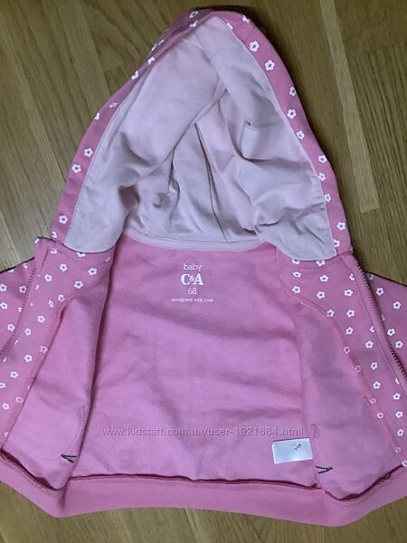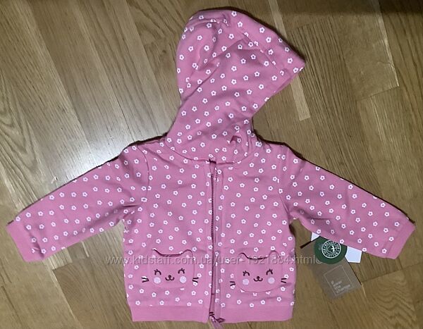 Худи производство C&A, Германия. Размер 68. Хлопок.Детские худи -производство C&A, Германия. Состав 100% хлопок.Застежка на молнию с защитой подбородка,капюшон на хлопковой подкладке, 2 карманчика в виде мордочек кошек, изнанка ворсистая.