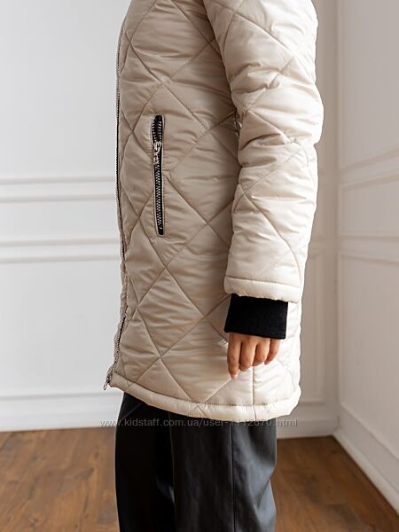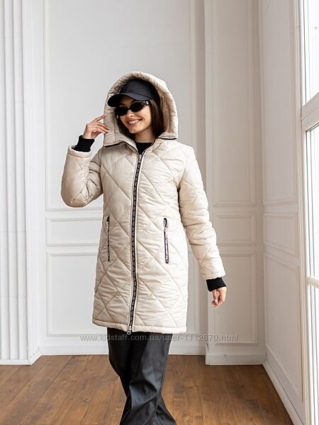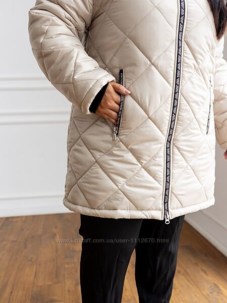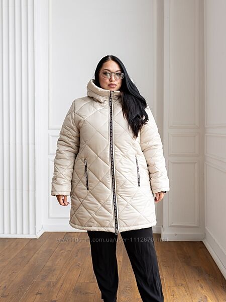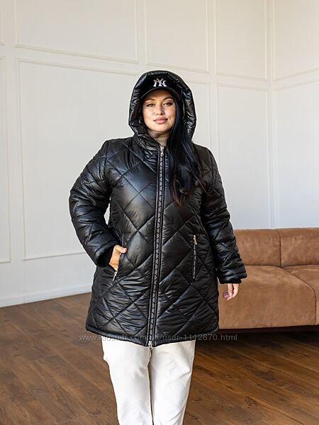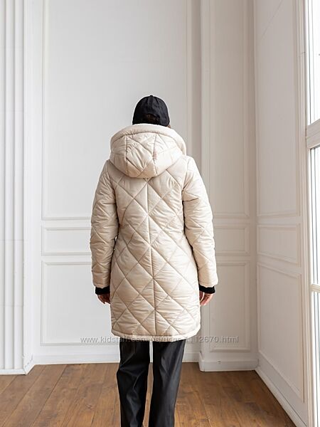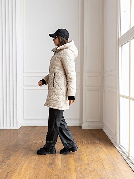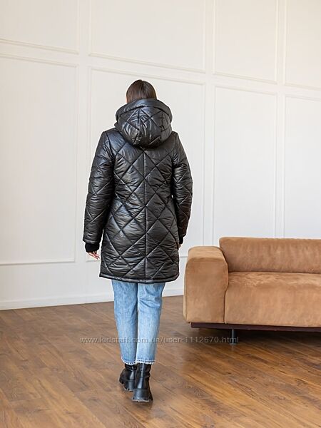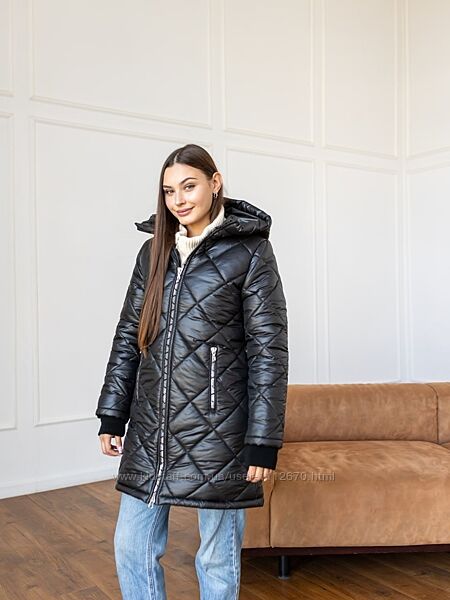 Модель Лора.Зимова жіноча подовжена куртка. Стьобана. Стьожка ромбовидна.