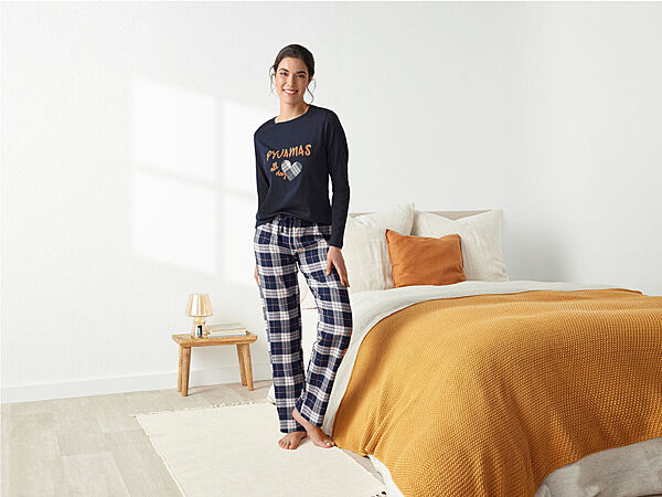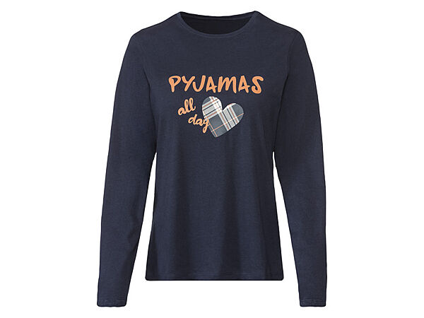 Піжамна футболка з довгими рукавами бавовняна з принтом для жінки Esmara LIDL 427933 темно-синій