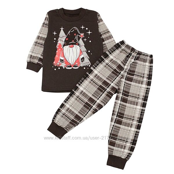 Дитяча новорічна піжама з начісом для дівчаток та хлопчиків.Полотно: Начіс (100% х/б)