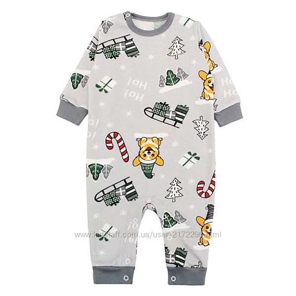 Дитячий ромпер з новорічними малюнками, кнопочки біля горловини та між ніжок.Полотно: Начіс (100% х/б)