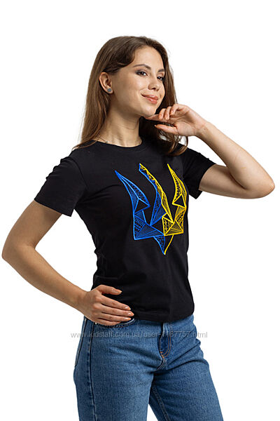 Футболка жіноча Тризуб стреч кулір чорний