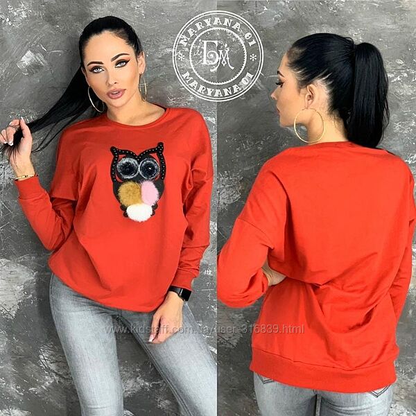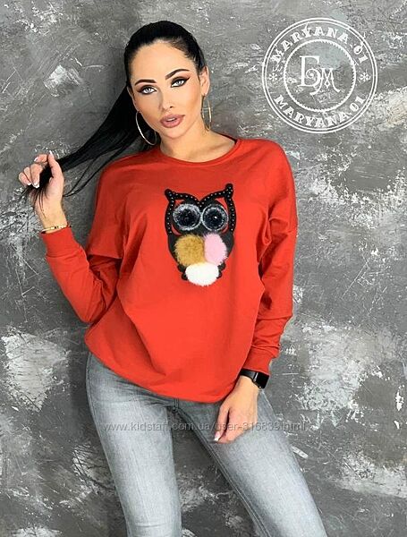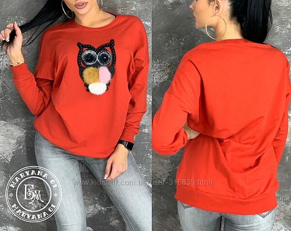 ❤ ОРИГІНАЛЬНИЙ СВІТШОТ ❤Відмінна якість, м’який і приємний до тіла матеріал. Дуже універсальна й необхідна річ у жіночому гардеробі. Светр стильний та оригінальний, декорований якісною пухнастою аплікацією у вигляді сови.