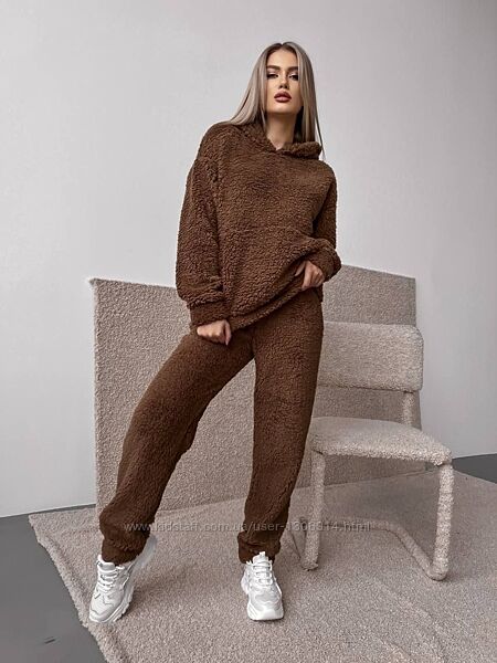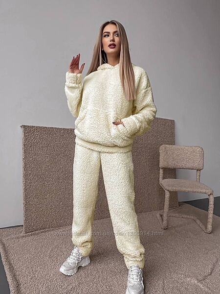 Теплий костюм «Teдді»кофта з капюшоном та кишенею кенгуру,