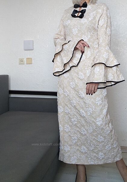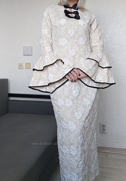 Нова (магазинна річ).Квіти ідуть в 3Д. на фото показала . Тканина дуже якісна, якби не було бірки зі складом то ніколи б не сказала що це поліестер, мені на дотик більше нагадує котон. Дівчата вона просто неймовірна. Залишила і собі таку Ззаду довгий замок
