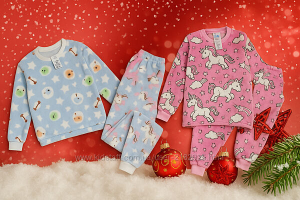 Подробное описание: 122-128 Дешево Пухнаста флісова зимова рожева та блакитна піжама на манжет