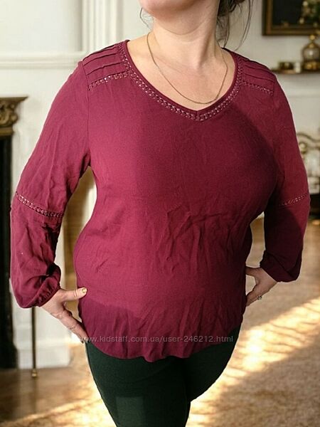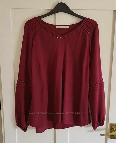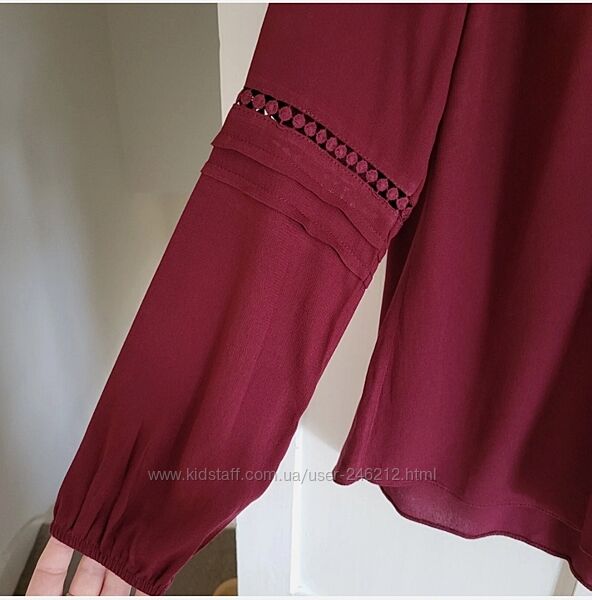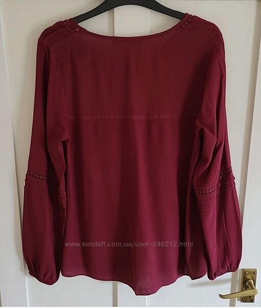 Англійська блуза George виного кольору.V образний виріз з тасьмою, широкі рукави зі складками та тасьмою, манжети на гумках.