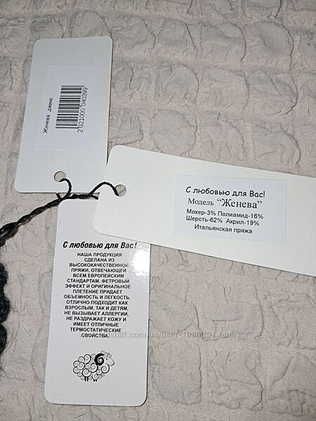 Шерсть - 62%, акріл - 19%, поліамід - 16%, махер - 3%