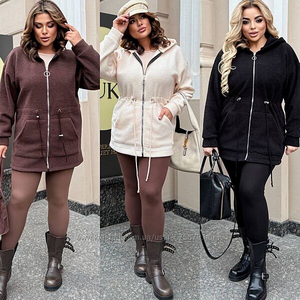 р.50 до 60р. Стильна затишна парка з худі з вовняного трикотажу