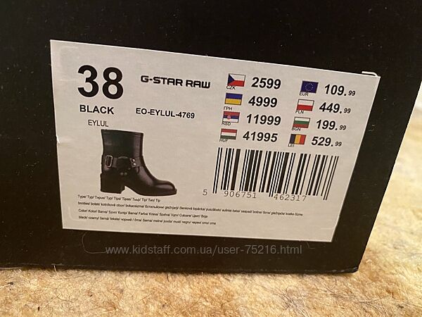 Якісні шикарні ботинки відомої фірми G-Star RAW розмір на коробці 38 на 24,5 см, повномірні. Зроблені з якісної шкіри, широкий стійкий каблук. Виглядають дуже стильно.Мені виявилися завеликими.