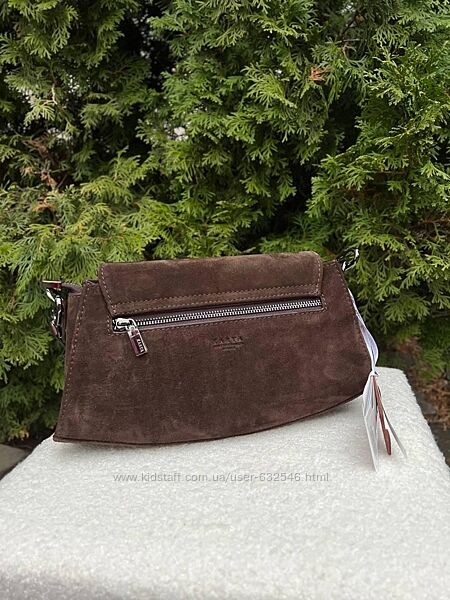 Жіноча сумка KARYA — стильна модель із натуральної замші або шкіри насиченого коричневого (шоколадного) кольору. М’яка на дотик, легка й елегантна — чудово пасує до осінньо-зимових образів, підкреслюючи витонченість стилю власниці.