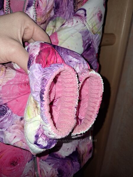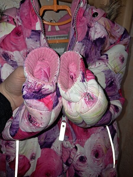 Дыр, потертостей и пятен нет, манжеты и низ целые. Попа не стерта. Резинки-лямки в порядке. Внутри капюшона приятный к телу плюш.