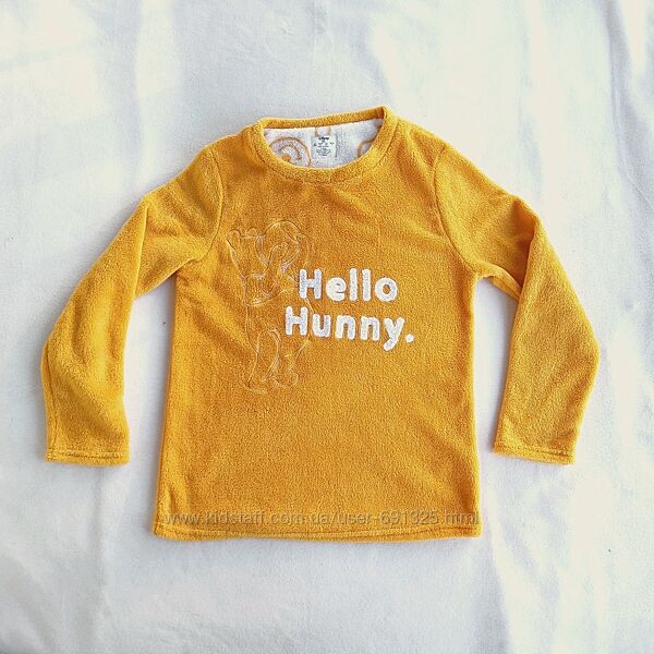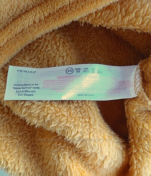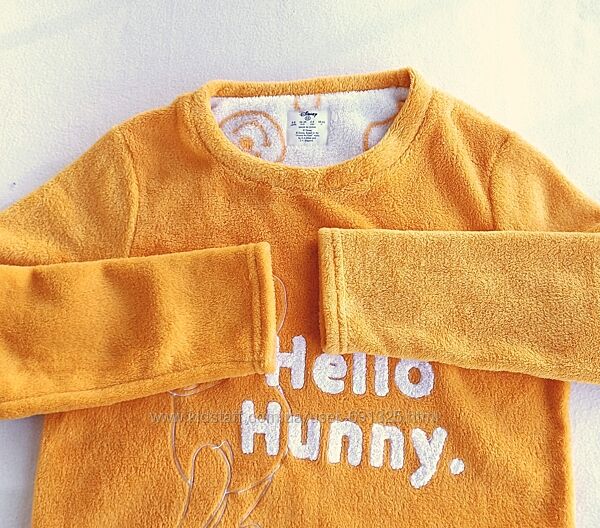 Пропоную жовто-білу теплу махрову піжаму (чи домашній костюм) з Вінні-Пухом від Primark. Матеріал велсофт двобічний. Вживана 1 раз на піжамну вечірку акуратно, стан відмінний, дивіться фото.Розмір вказано XS, довжина кофти від плеча 64 см, довжина рукава від шиї 68 см, ширина