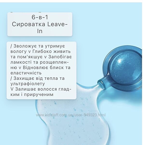 Зволожує волосся та захищає його від сонця, пошкодження кольору та ламкості