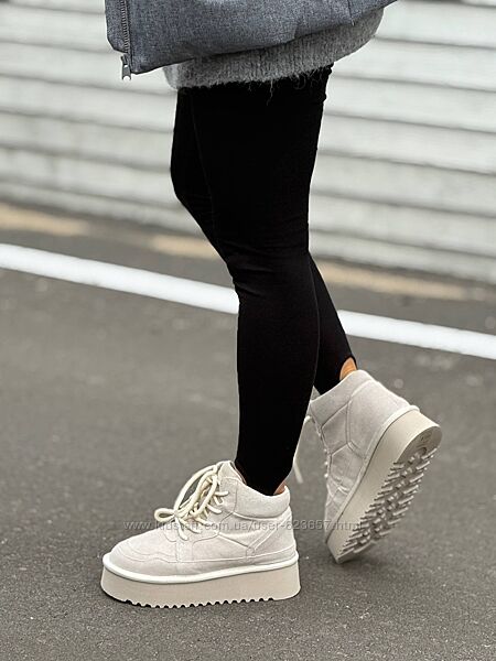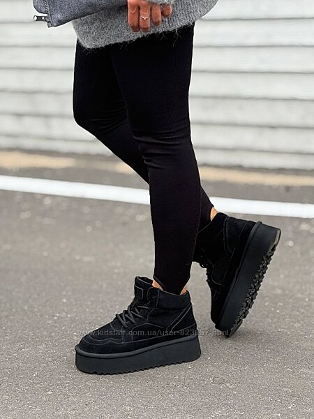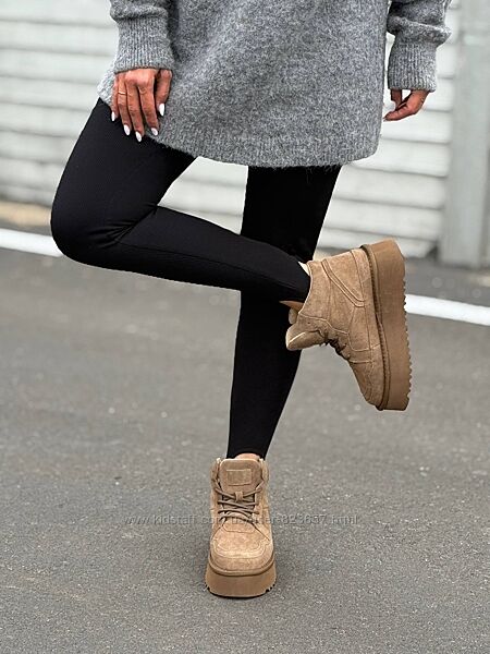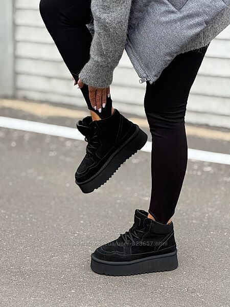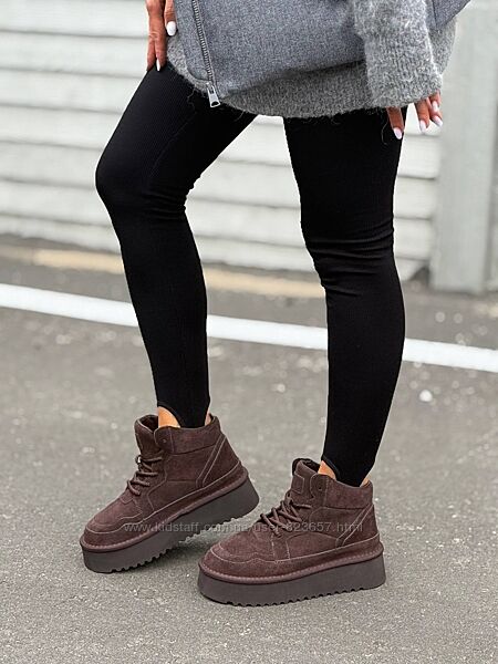 замшеві черевики (уггі зі шнурками) на платформі 5см