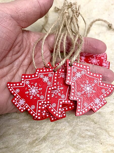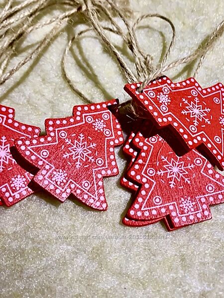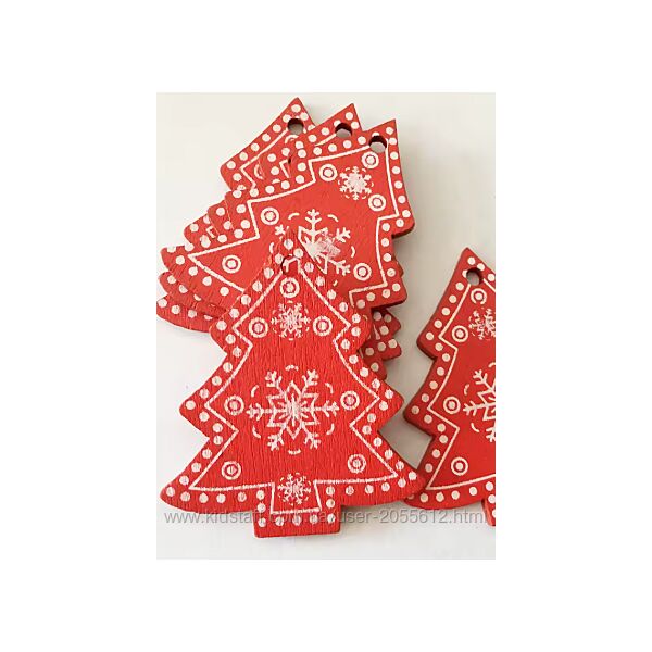 Набір дерев´яних іграшок на ялинку червоні ялинки