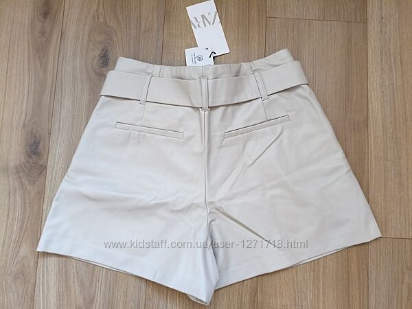 Шорти під шкіру від Zara.Світло-бежевого кольору. Утеплені. Мають бокові кармани.