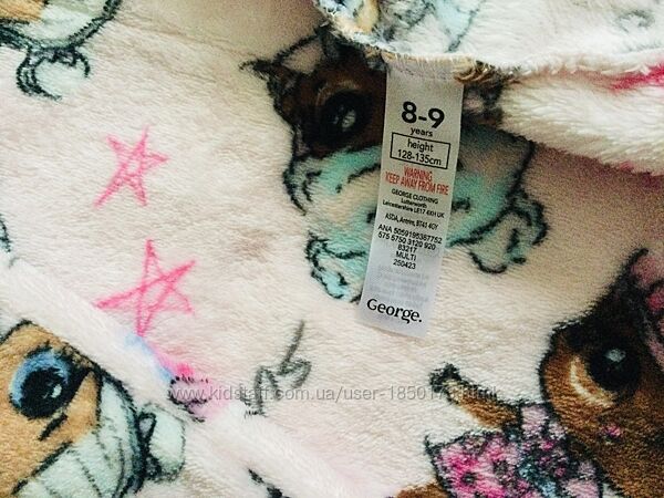 8-9 рок George халат флісовий, махровий,, пухнастий Lol та з принтом Літер, теплий, банний, на море або в басейн. Стан: нового, слідів носки нема, зав´язується на талії пояском. є Кишені.Лол довжина 80; рукав від вороту 53