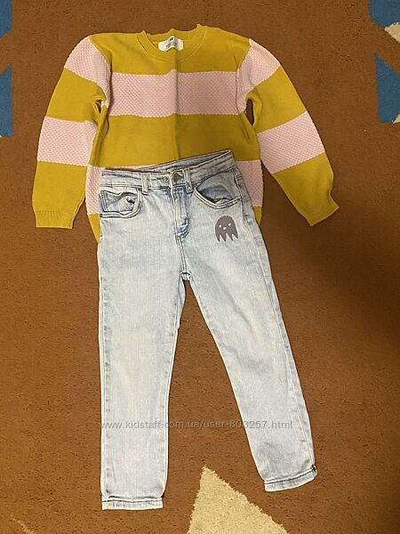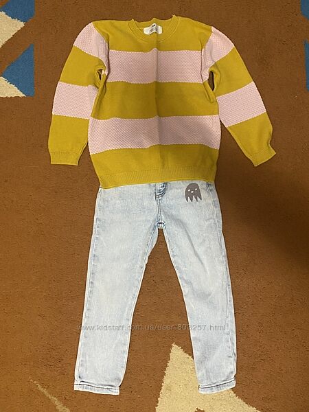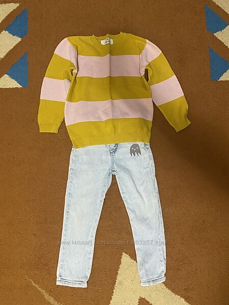 Джинси в чудовому стані, ріст 110, джинс мʼякий, тягнеться трішки, застібка замок і кнопкаСветр а H&M 110-116 в ідеальному стані 100 грн