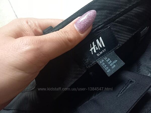 Мужские брендовые классические черные штаны брюки H&M, 36 размер. Не ношение (сток). Красиво ложатся по фигурe. Oтличного качества. Высокая посадка. В поясе - 45-46 см. В бедрах - 54-55 см. Длина - 108 cм. Низ - 17 cм. Посадка 27 и 40 см. Пересылаю.