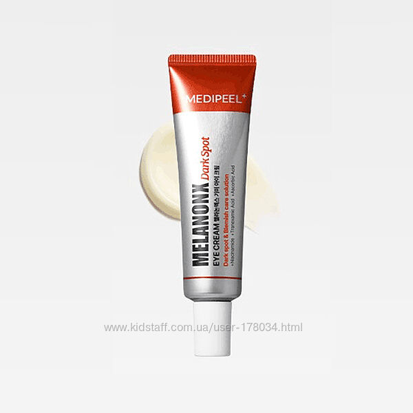 Medipeel - MelanonX Dark Spot Eye Cream — крем для кожи вокруг глаз, разработанный для уменьшения тёмных кругов, пигментации и неровного тона. Современная осветляющая формула в сочетании с активными ингредиентами обеспечивает комплексный уход: увлажнение, питание и восстановление. Лёгкая консистенция быстро впитывается, придавая коже гладкость, свежесть и сияющий вид.Основные преимущества: