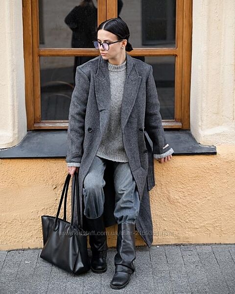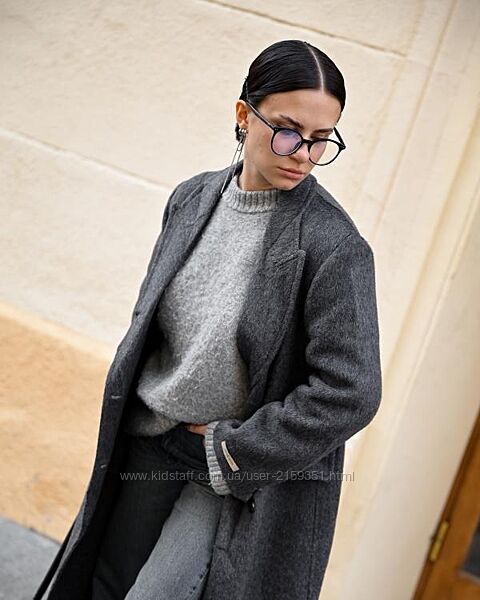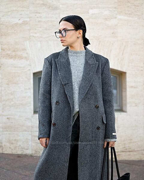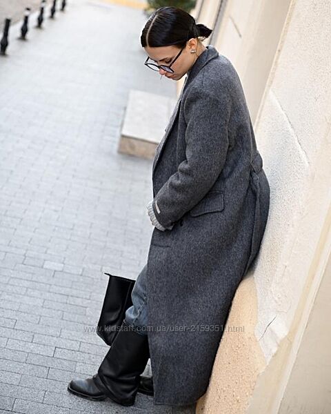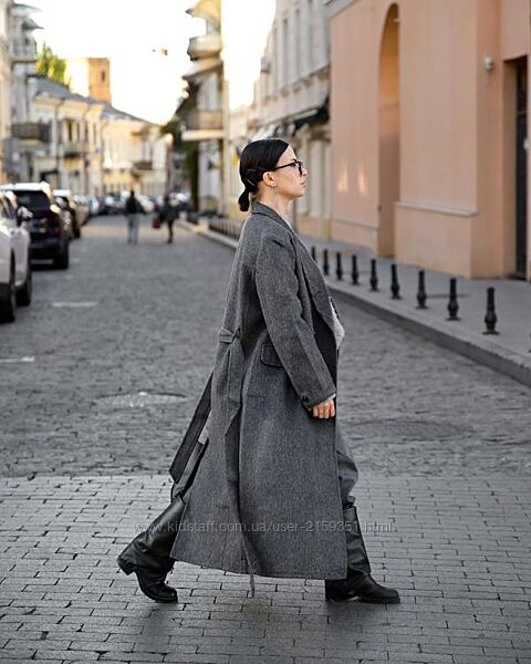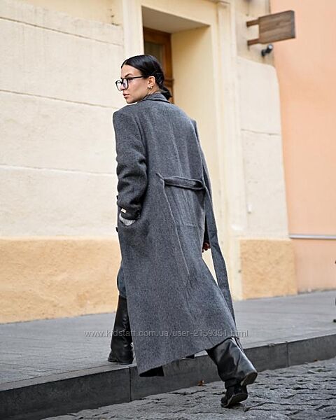 Стриманий сірий відтінок додає елегантності, роблячи пальто універсальним елементом гардеробу — від повсякденного образу до офісу.