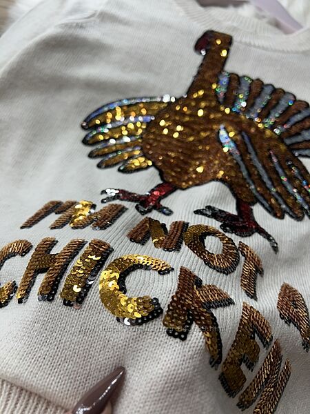 Неймовірно м’який і приємний на дотик светрик у світло-бежевому відтінку.Вишуканий, але стриманий — прикрашений блискучим візерунком із паєток, який красиво переливається при світлі.