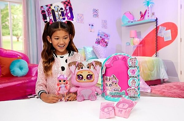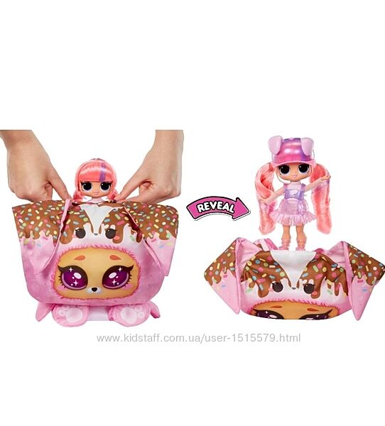 Сюрприз на цьому не закінчується! Розстебніть липучку на потилиці тваринки, щоб знайти чудову ляльку, заховану всередині!