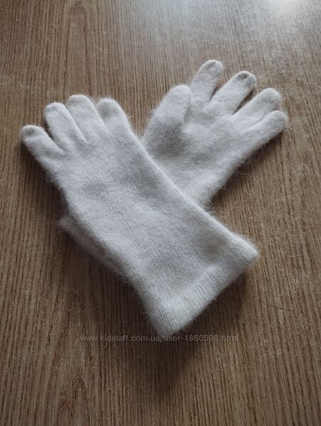 Перчатки молочного цвета. Теплые, легенькие и пушистые. Мягкий трикотаж, 80% ангора, 20% нейлон.Размер указан one size, замеры на фото.