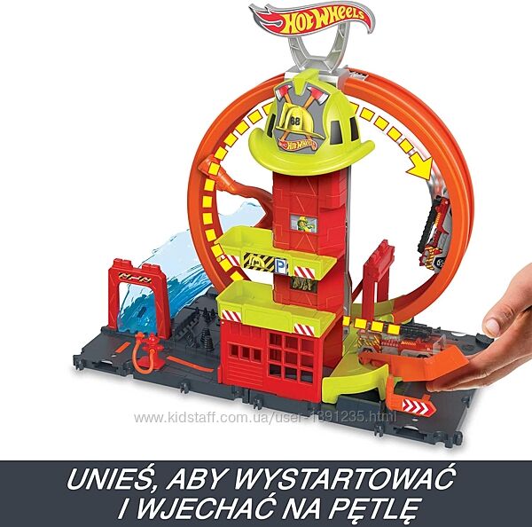 Врятуйте місто Hot Wheels! За допомогою Суперпетлі пожежної станції ви можете брати участь у гонках та виконувати трюки на петлі, яку можна налаштувати.
