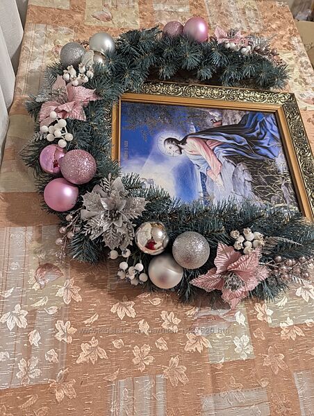 гірлянди ,вінки в наявності і під замовленнявінок з литої хвої-55 см-800 грн