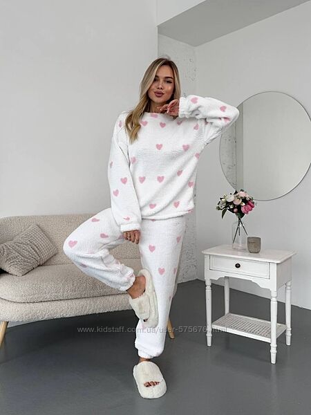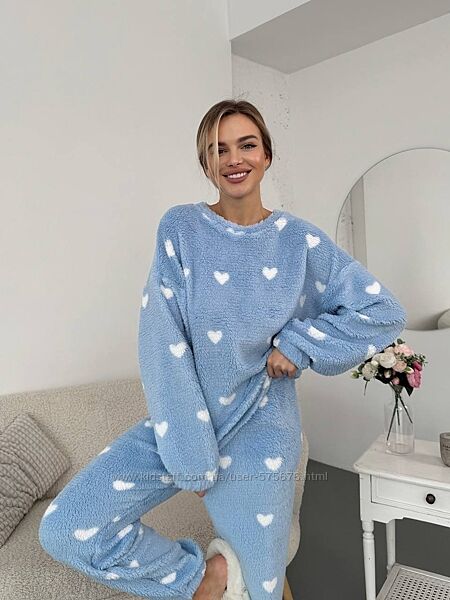 Подробное описание: р.42 до 52р. Жіночий теплий домашній костюм - піжама хутро тедді