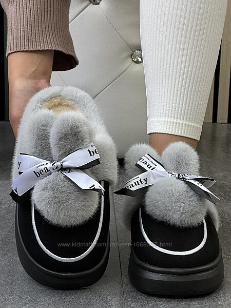 Жіночі чорні капці з бантиком - затишні та м´які домашні тапочки, створені для комфорту та тепла в холодні дні. Верх тапочок прикрашений бантиком, що надає їм привабливий вигляд. Ці тапочки ідеально підходять для домашнього відпочинку, зберігаючи ваші ноги в теплі завдяки м´якому внутрішньому хутряному шару. Ці тапочки - ідеальний вибір для створення затишної та комфортної атмосфери у вашому будинку. Ці стильні та милі тапочки не лише забезпечать вашим ногам тепло та зручність, але й додадуть нотку чарівності у ваш повсякденний образ. Замовте тапочки жіночі чорні прямо зараз і насолоджуйтесь затишком та комфортом у будь-яку пору року!