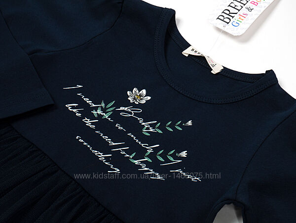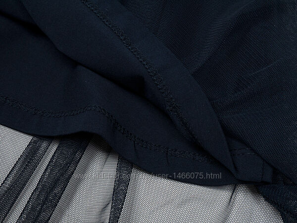 Сукня прямого силуету, відрізна по лінії талії. Верх сукні - бавовняний трикотаж, спідниця - легкий фатин в один шар, поверх трикотажної основи. Лінія з´єднання верху сукні зі спідницею добре тягнеться, завдяки вставленій силіконовій резиночці і не завдасть незручностей при одяганні.