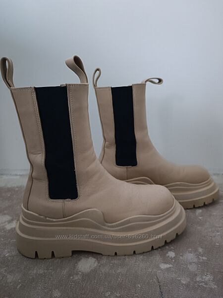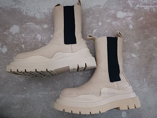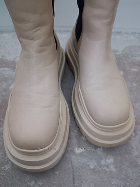 Шкіряні челсі, взуті пару разів , малуваті. Турецького виробництва, на платформі 3.5 см підошва і каблук 5 см, довжина устілки 25,5 см (до 26 см, в мене 26 - натирає палець) розмір 40, утеплені байкою, нібито стрижане хутро . Висота 21 5 смСтан відмінний.
