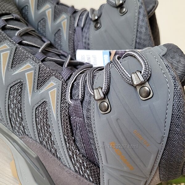 Верх екоматеріали + текстиль Мають мембрану Gore-Tex Носочки та п´ятка ущільнені Район кісточок та язичок - м´якенькі Устілка анатомічна, з бортиками, текстильна, дихаюча, знизу войлочна Фісуються за допомогою шнурків + 2 люверси вверху Прогумова підошва із надійним протектором Колір сірий Виробник Словаччина
