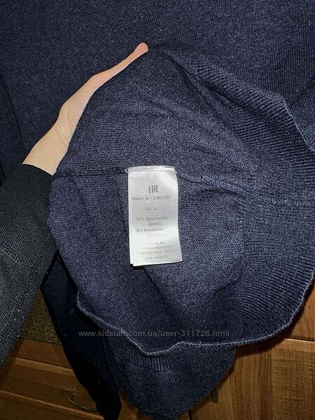 Замеры: длина - 70 см, плечи - 42 см, рукав от плеча - 70 см, ширина по груди - 55 см.Состав: 92% хлопок, 8% кашемир.