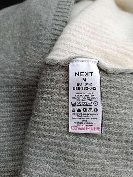 Продам відмінний джемпер р.M-L Next (хоча вказаний р. M, він більшомірить – орієнтуйтеся на заміри ), теплий. Оригінальний светр в гарному стані, нюансів та дефектів немає.Склад: 52% поліестер, 41% акрил, 4% вовна3% еластан
