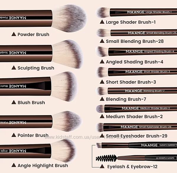 Набір включає всі необхідні для пензлики для нанесення якісного макіяжу: