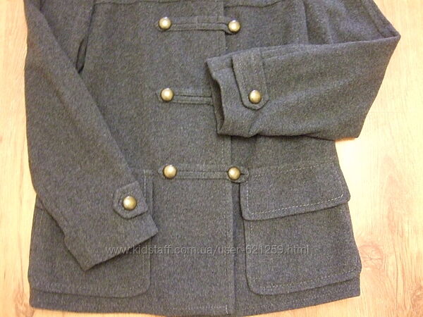 В наличии- пальто черного цвета и глубокого серого цвета. Все детали- манжеты , карманы, хлястики-красиво отстрочены более светлыми серыми нитками, металлические пуговицы. На этикетке указано-100% гарантия качества.