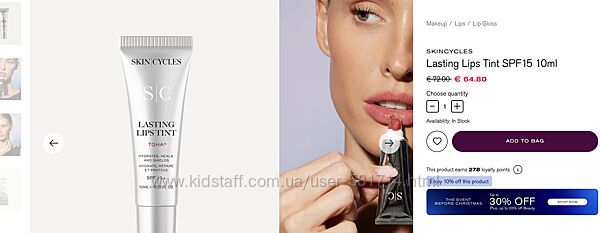 Бальзам для губ против старения skin cycles lips tint Spf15 стоит 64 евро