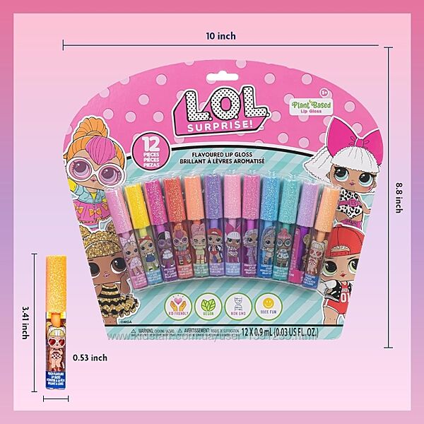 Подробное описание: Набір LOL Surprise 12 Piece Plant Based Lip Gloss 12 блисків для губ